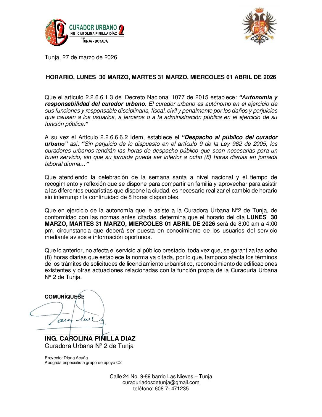 HORARIO DE ATENCION AL PUBLICO JUEVES 02 DE OCTUBRE DE 2025 ...